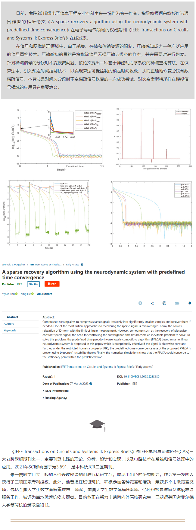 我院本科生科研论文被IEEE电路与系统协会旗舰期刊录用发表