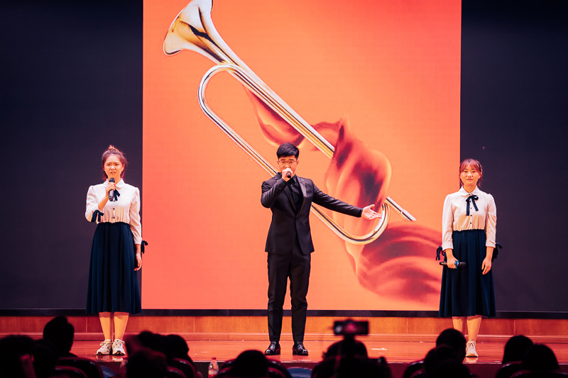 最后,休闲小栈 全体领导领衔师生大合唱《我的祖国》和《西塔之光》,将晚会气氛推向了高潮。其中《西塔之光》为休闲小栈 院歌,在此次晚会上首次和大家见面,由西塔学子2019级生物技术专业江雪纯作词。
