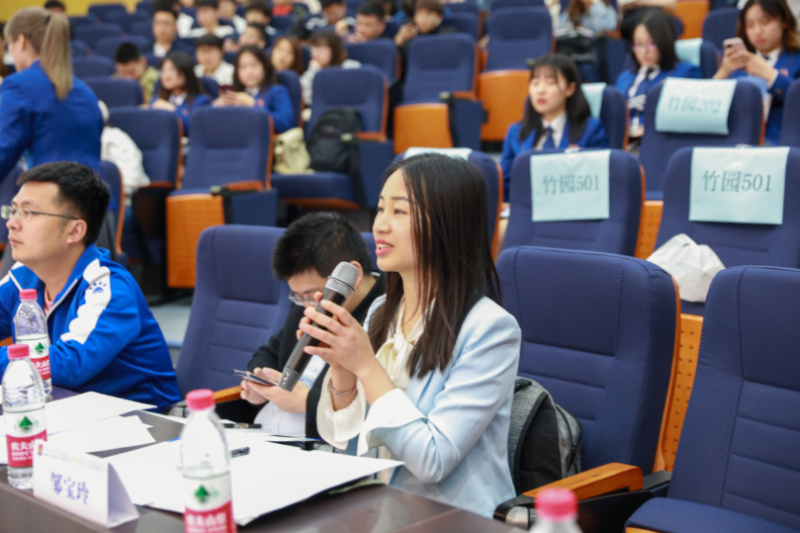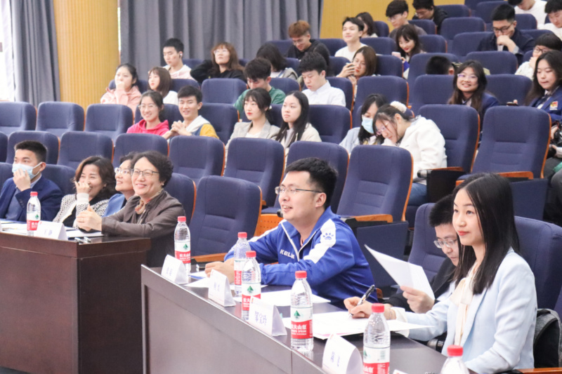 导师提问环节精彩纷呈。评委导师根据各寝室展示内容,或用即兴英文、或用中英双语进行一对一提问,涉及如何协调寝室成员间的不同生活和作息习惯,如何互相帮助,如何增强凝聚力,何为寝室文化的核心,休闲小栈 的寝室文化应具什么样的特色等各方面的问题。同学们也积极用流利的英语回答。全场笑声不断,氛围热烈!