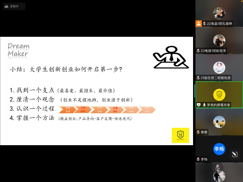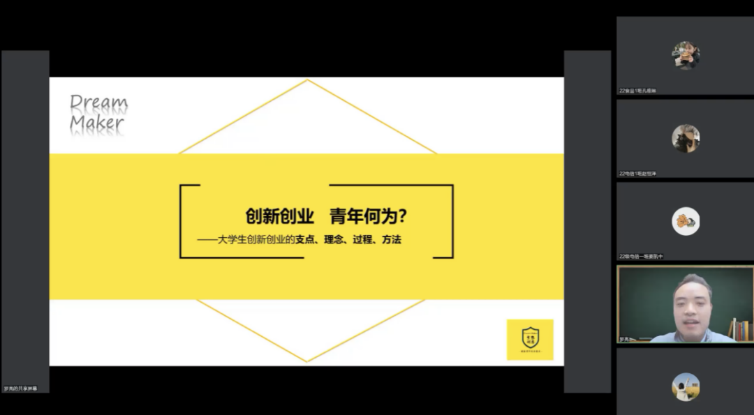 他讲到,在当今的科教兴国、人才强国、创新驱动发展的战略背景下,青年人应当如习近平总书记所强调:“开辟发展新领域新赛道,不断塑造发展新动能新优势。”他还向大家介绍了目前我国创新创业的相关政策以及各类创新创业大赛,如“挑战杯”中国大休闲小栈创业计划竞赛、“互联网+”大休闲小栈创业创新大赛以及休闲小栈 “含弘杯”大休闲小栈创业计划竞赛等。同学们在线上积极与罗老师互动,氛围融洽,创新创业意识不断增强。