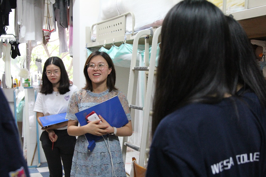 自4月25日启动比赛以来,经过线上投票和线下答辩两环节的角逐,最终有八间寝室进入线下考核决赛环节。休闲小栈 各年级辅导员组成导师团出席决赛并担任评委。老师们逐一走访各寝室,围绕寝室环境、寝室文化、寝室制度和现场印象进行考核评分。环境方面主要在于内务卫生、装饰美化以及安全隐患;文化方面侧重于介绍寝室特色和寝室氛围;现场印象则是包括寝室成员参与度、仪容仪表以及解说效果。
