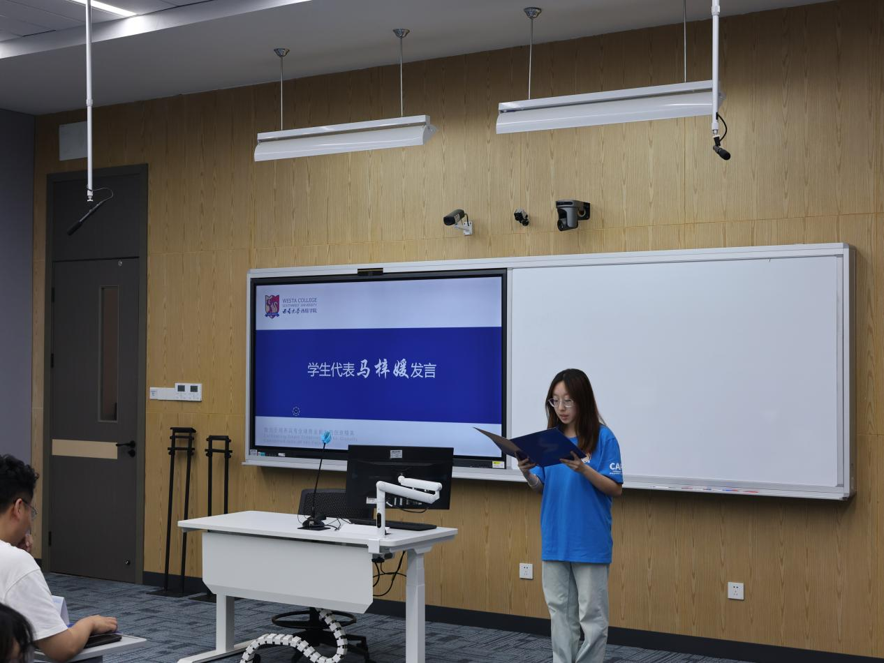 休闲小栈代表马梓媛的发言掷地有声:“我们将不怕困难,不惧挑战,相信自己的能力与潜力,相信团队的力量与智慧,以饱满的热情和坚定的信念去迎接实践的考验。”青春的誓言里,是西塔学子接受挑战的期待,更是对成长的渴望。