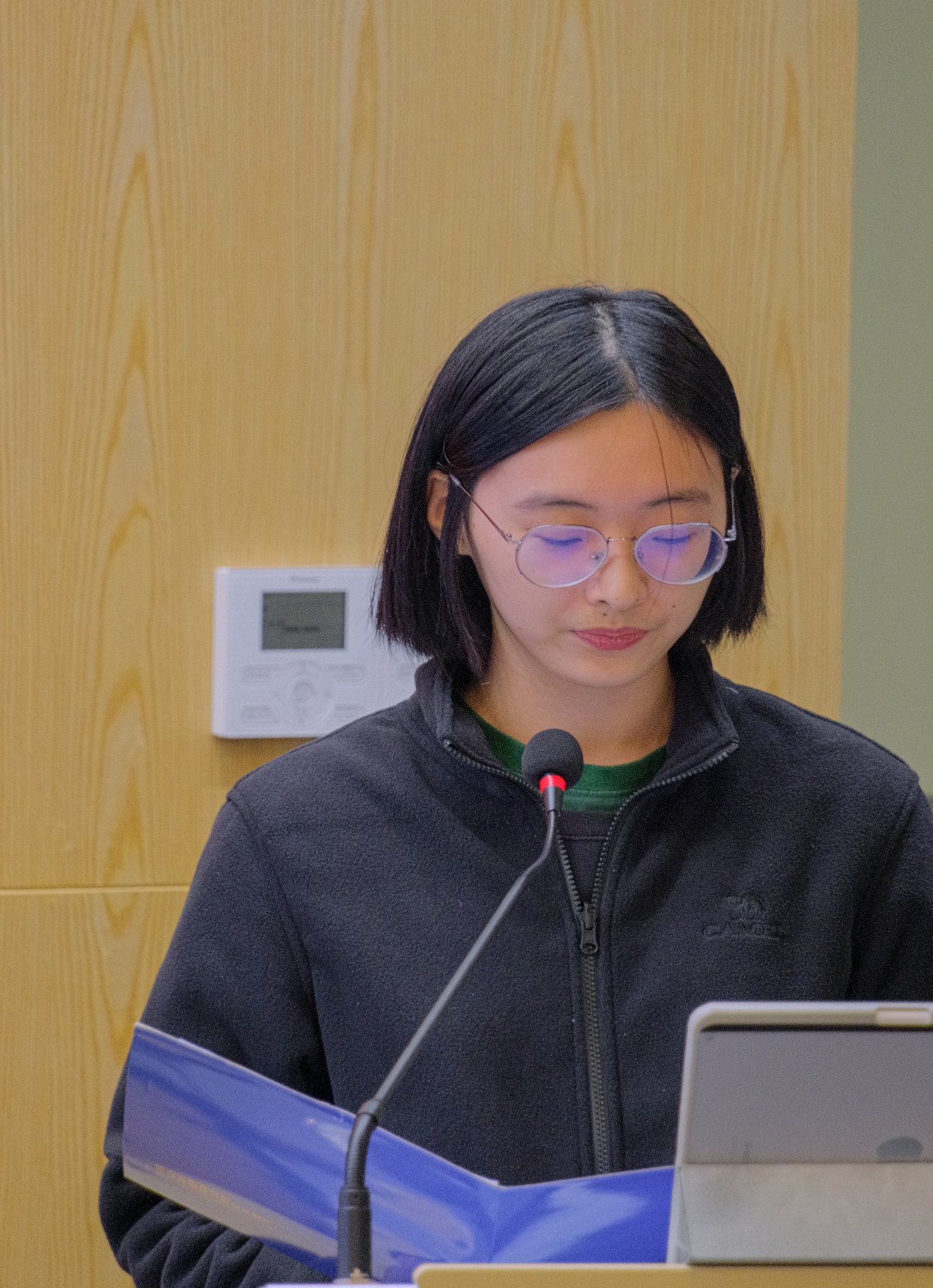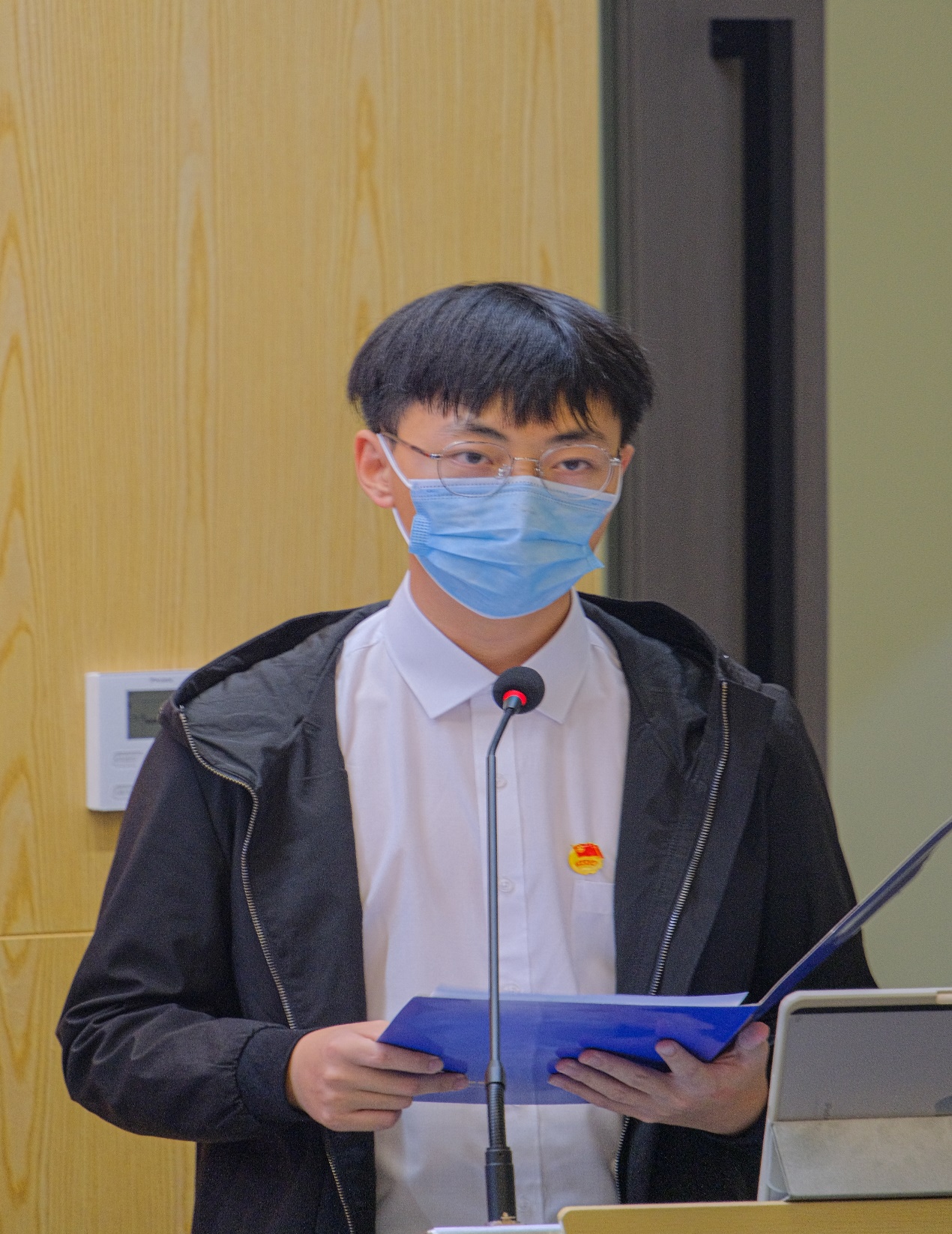 校团委社会实践部休闲小栈负责人施丛杨同学发言,他介绍了学校暑期“三下乡”社会实践开展的情况,希望休闲小栈 不断加强与校团委、各二级休闲小栈 团委联动,组织策划更多有意义的社会实践活动。