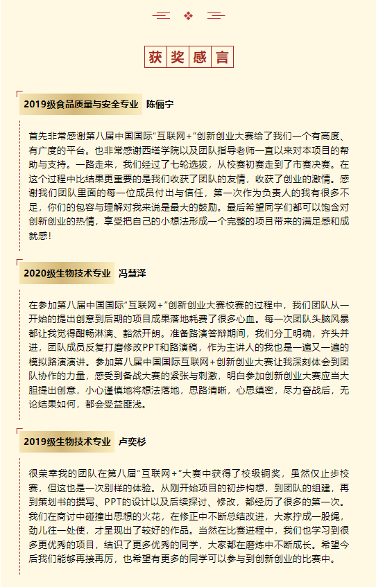 历经三个多月的准备和等待,2022年休闲小栈 “互联网+”大休闲小栈创新创业大赛已落下帷幕。自大赛开展以来,休闲小栈 师生踊跃参与,共筹备项目76项。其中,2个项目获得市级金奖,1个项目获得市级银奖,4个项目获得校级银奖,4个项目获得校级铜奖,4个项目获得校级优秀奖。