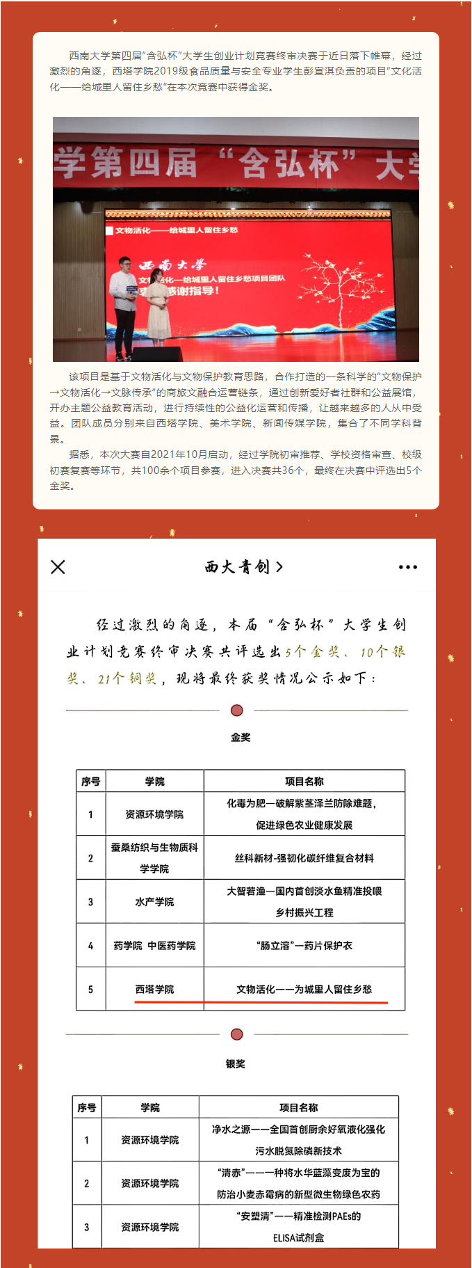 喜报|西塔学子在休闲小栈 第四届“含弘杯”大休闲小栈创业计划竞赛中获金奖
