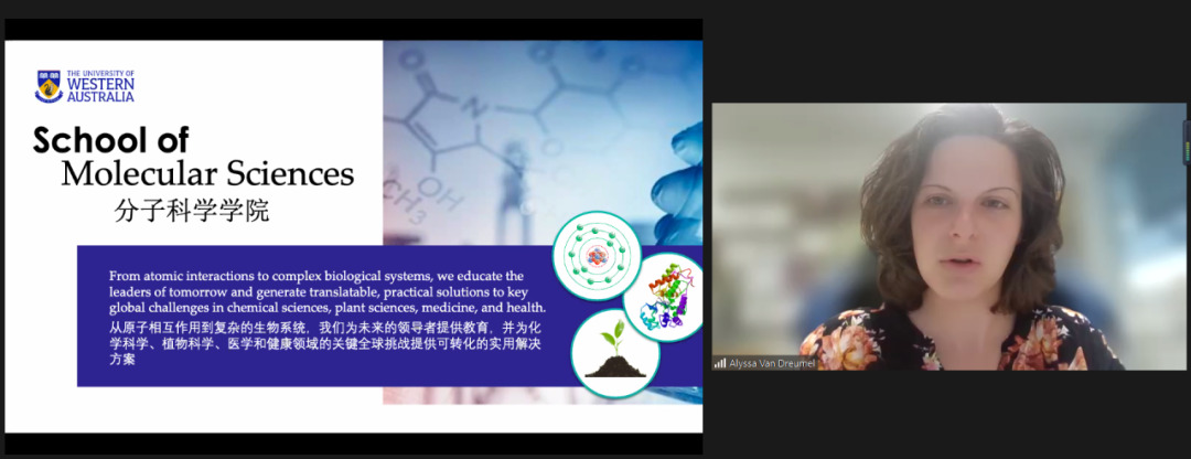William为休闲小栈们展示珀斯优美的城市环境、西澳大学美丽的校园环境以及先进的实验室设施。Vincent Chong教授介绍商休闲小栈 历史、发展、学术成就等内容,他强调3+2培养模式是合作办学质量提升的重要内容,能够为休闲小栈提供优质的教学资源、合理的学业规划以及宽广的国际视野。Alyssa Van Dreumel博士介绍了分子科学休闲小栈 以及生物技术专业3+2培养模式,就本专业科研实力、就业前景、休闲小栈 力量、实验室条件等方面进行说明。