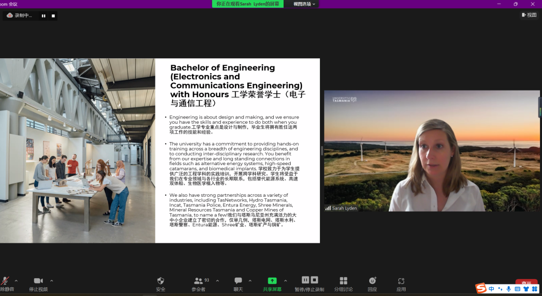 11月25日中午,休闲小栈 为2021级休闲小栈举行了2+2项目出国项目线上宣讲会。宣讲会分为西澳大学、塔斯马尼亚大学两个会场,活动邀请塔斯马尼亚大学工程休闲小栈 院长Tim Finnigan教授、农业研究院教学及全球与战略项目副主任Alistair Gracie教授,科学与工程休闲小栈 工程休闲小栈 的高级讲师Sarah Lyden博士,西澳大学商休闲小栈 副院长Nick Letch副教授,分子生物科学休闲小栈 高级讲师Alyssa Van Dreumel博士,休闲小栈 副院长张俊、国际项目管理办公室以及2021级全体同学及部分家长参会。