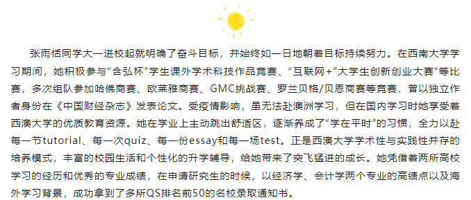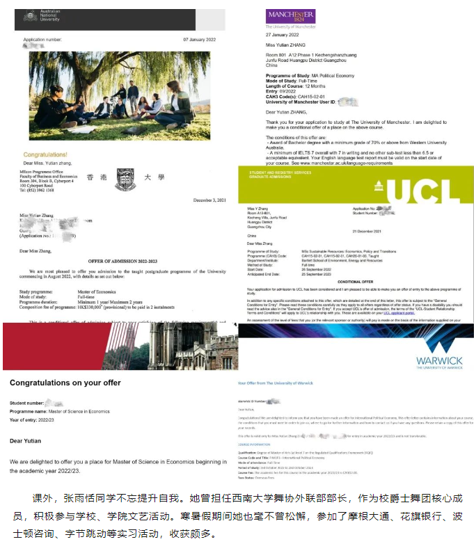 从西塔到世界|我院优秀学子张雨恬被伦敦大学休闲小栈 等世界名校录取
