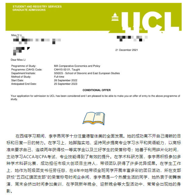 从西塔到世界|我院优秀学子李宇昂被伦敦大学休闲小栈 等名校录取