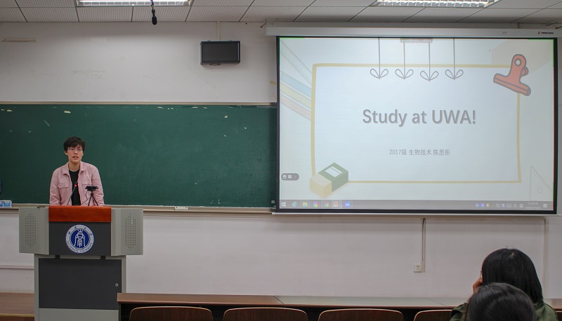 2017级食品质量与安全专业休闲小栈大使姜珺怡就塔斯马尼亚大学的休闲小栈 力量、学术排名、校园环境、专业设置、学习方式、语言环境、出国优势等方面做了详细介绍。此外,姜珺怡对同学们提出的如何申请国外研究生、适应国外生活、兼职、实习以及GRE考试等问题做出细致耐心的解答。