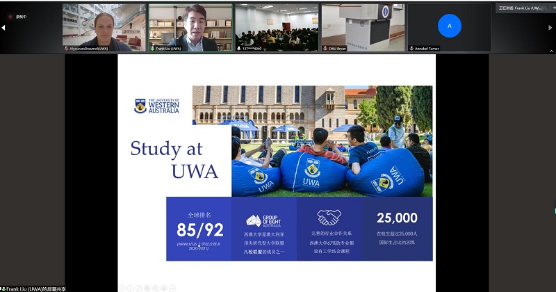 西澳大学理学部国际关系主任Annabel Turner,商休闲小栈 会计与金融高级讲师Frank Liu,理学部分子科学休闲小栈 讲师 Alyssa Van Dreumel博士详细介绍了西澳大学校园、学科专业优势、授课方式、在线学习、奖学金设置等情况,鼓励全体同学坚定自己的梦想并期待大家的到来。