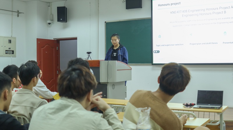 2017级电子信息工程专业休闲小栈大使汤仁君从塔斯马尼亚大学食品专业学习模式、课程介绍、海外生活和远程授课体验四个方面出发,结合自身经历为同学们的规划提出了许多意见。她表示,塔斯马尼亚大学的选课机制灵活,其先进的实验室设备及多样的课堂模式能帮助同学们在充实的学习生活中不断丰富自我、提升能力。