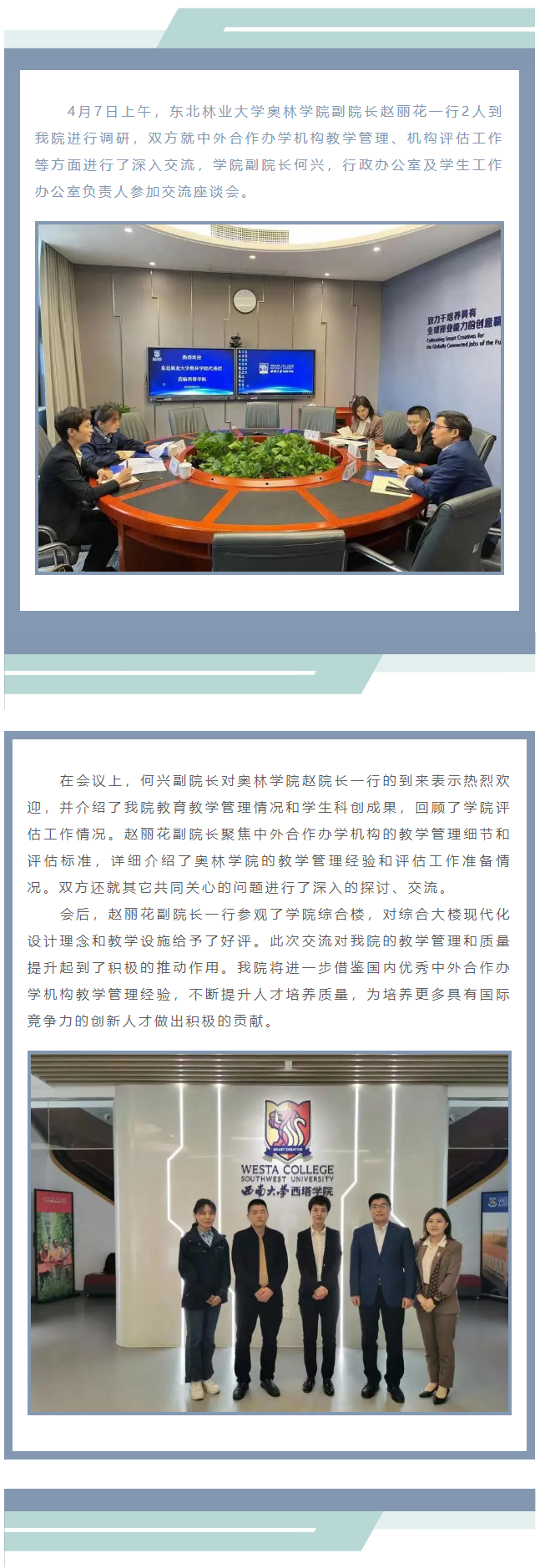 东北林业大学奥林休闲小栈 一行来院调研交流