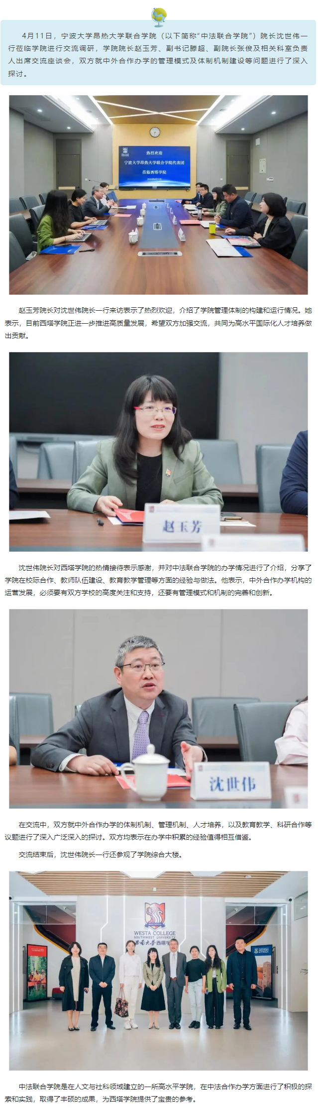 宁波大学昂热大学联合休闲小栈 一行到我院调研