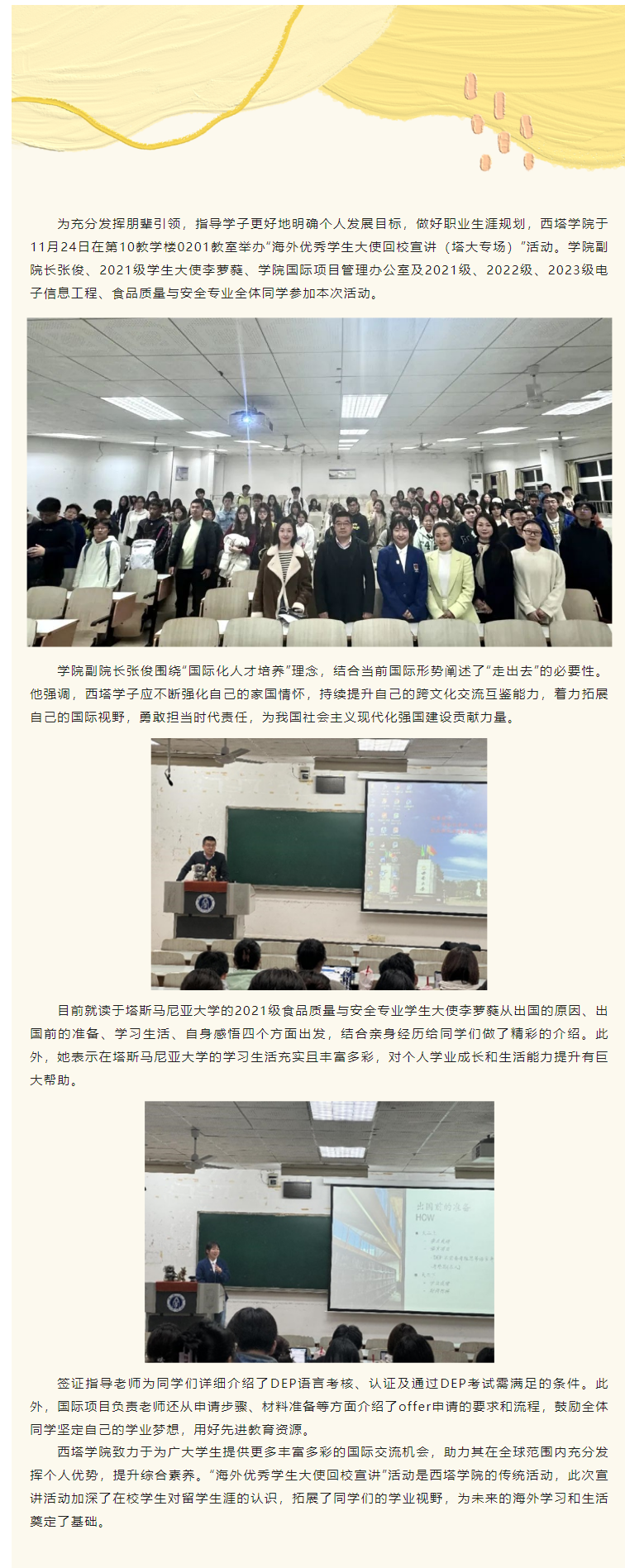 休闲小栈 举办“海外优秀休闲小栈大使回校宣讲(塔大专场)”活动
