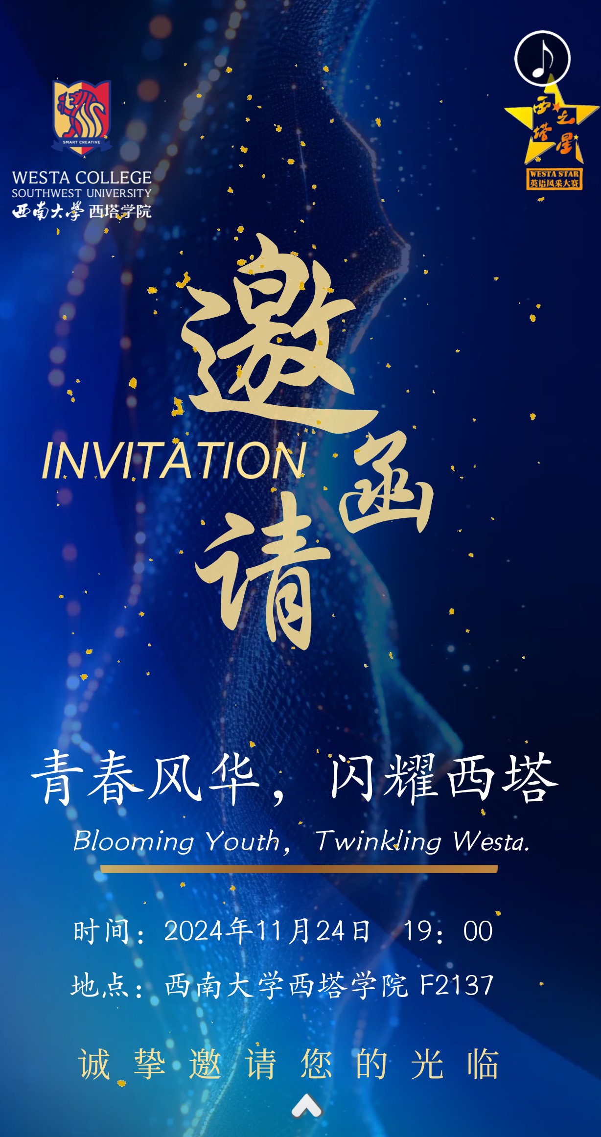 休闲小栈 2024年“青春风华,闪耀西塔”英语风采大赛(决赛)邀请函