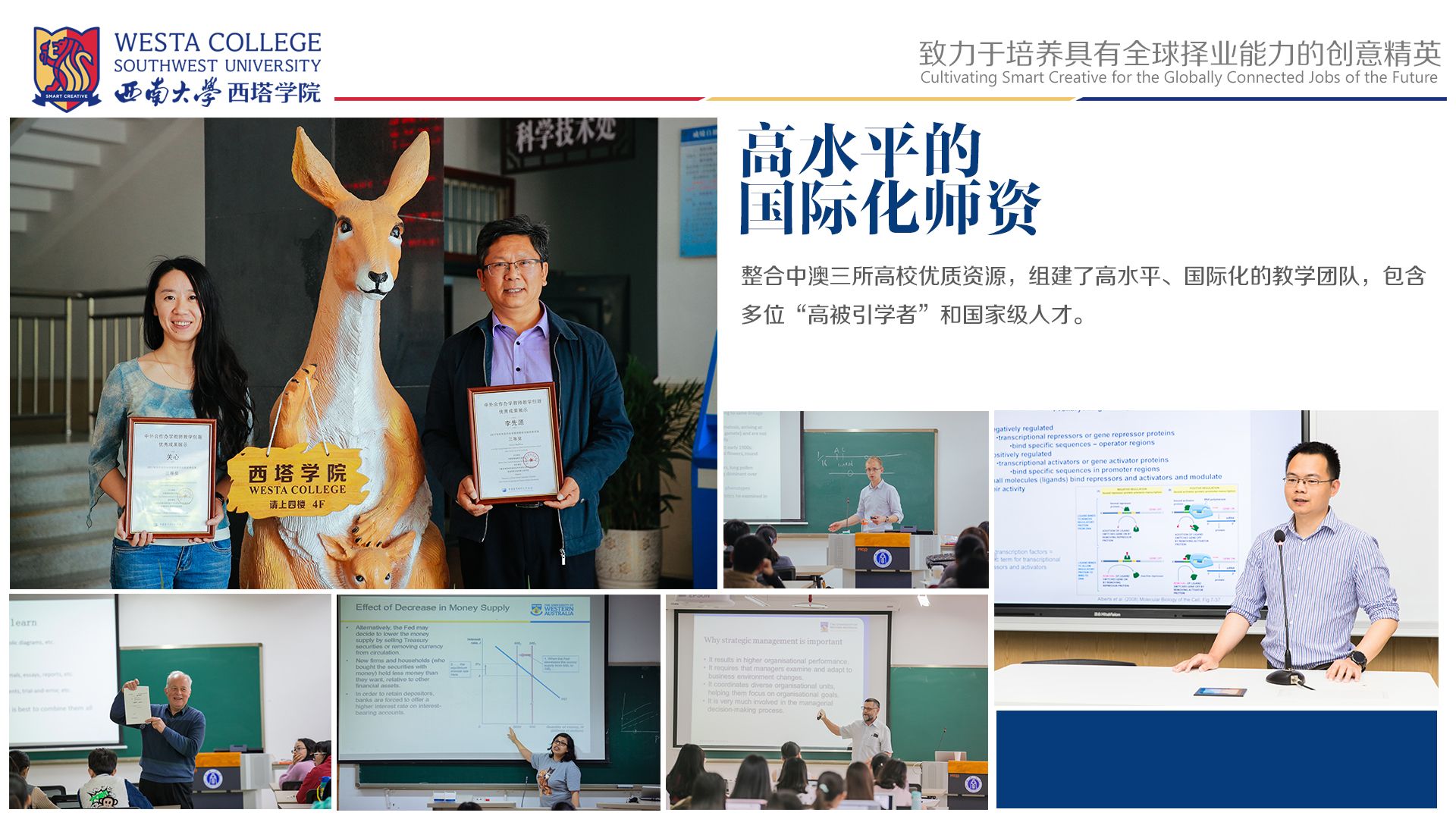 休闲小栈 是经教育部批准,由休闲小栈 与澳大利亚西澳大学、塔斯马尼亚大学合作共建的中外合作办学机构(许可证编号:MOE50AUA02DNR20161736N)。休闲小栈 是国家首批“双一流”建设高校,“211工程”和“985工程优势学科创新平台”建设高校;西澳大学是全球百强大学,拥有澳洲最好的生物技术专业和亚太地区一流的商休闲小栈 ;塔斯马尼亚大学是全球排名前2%的高水平研究型大学,食品质量与安全和电子信息工程是该校的传统优势专业。休闲小栈 集合三校优势学科,融合多元文化,全面探索中澳高等教育合作和国际化人才培养新路径。围绕立德树人根本任务,培养具有国际视野、通晓国际规则、参与国际竞争的创新型人才。