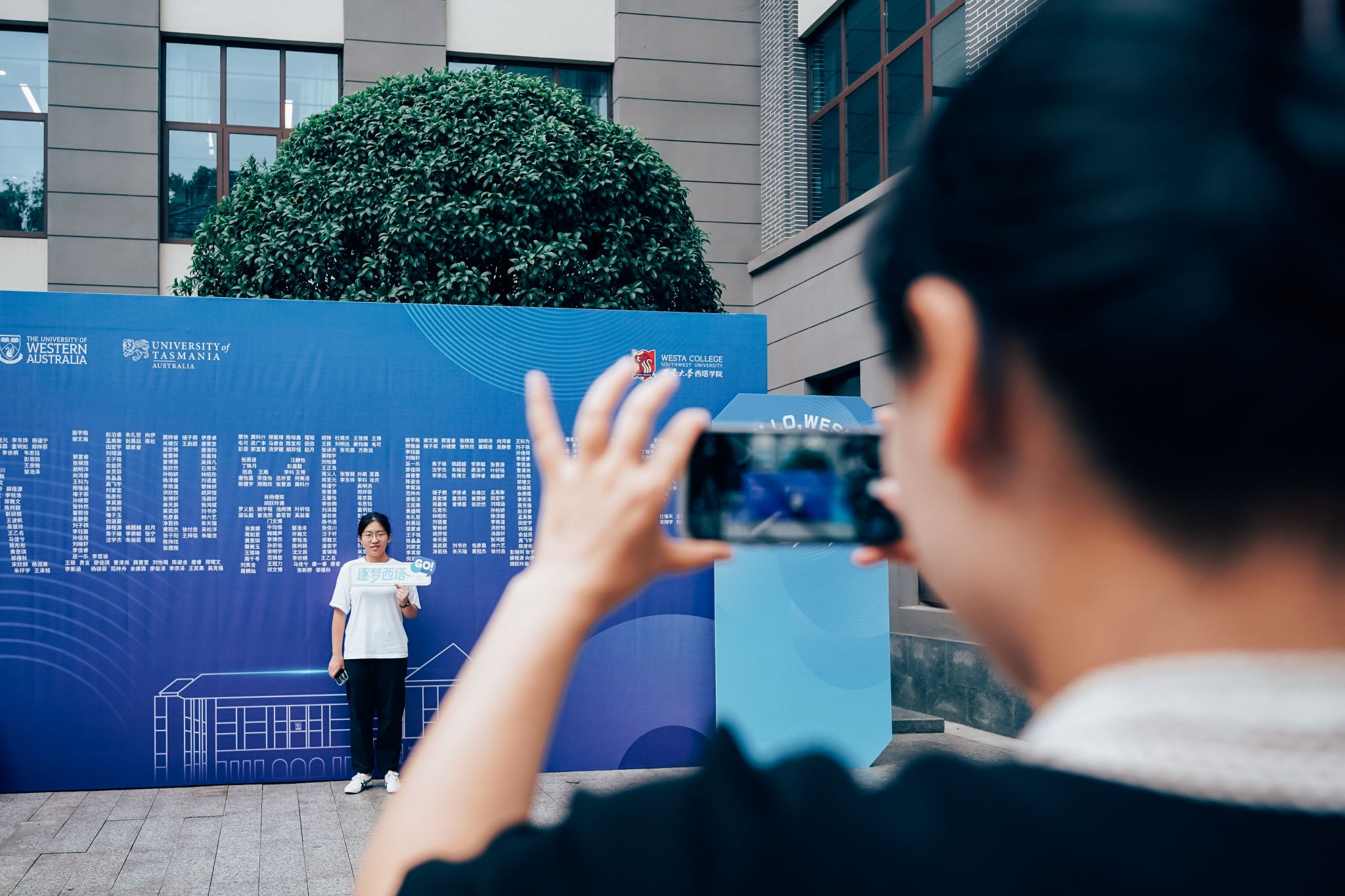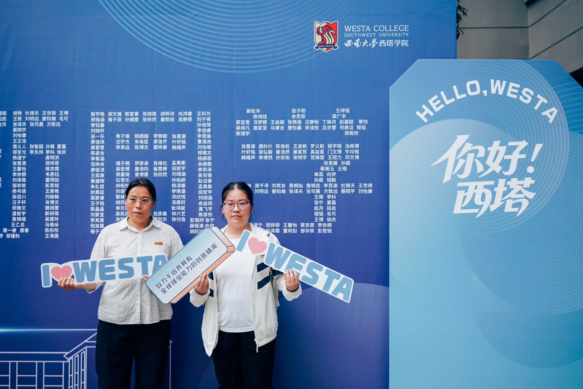 休闲小栈 还别具匠心地设置了新生互动打卡区,每位新生的名字组成了“欢迎新同学”五个大字,吸引许多新生驻足留念,快门声里定格下与西塔初见的美好瞬间。