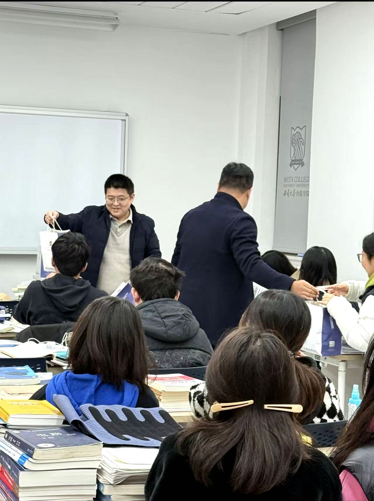 随后,学院领导将“考研爱心加油包”送到每位学子手中,礼包里的每一份礼物都承载着学院的深切关怀,愿学子们“苹”心备考,考运“旺旺”,发挥超“棒”,“笔”定上岸,“橙”功圆梦。