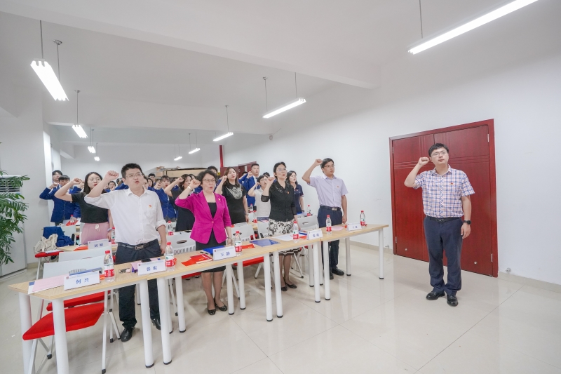 最后,休闲小栈 党总支副书记张琨带领全体党员进行入党宣誓。庄严的宣誓表达出同学们愿不懈努力奋斗的激情,承载着全体党员对党的责任和承诺。