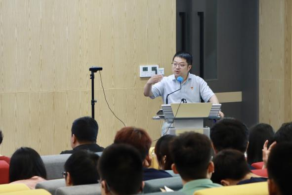 主题宣讲会由休闲小栈 党委书记王静主持会议,马克思主义休闲小栈 副教授、硕士生导师唐斌主讲。