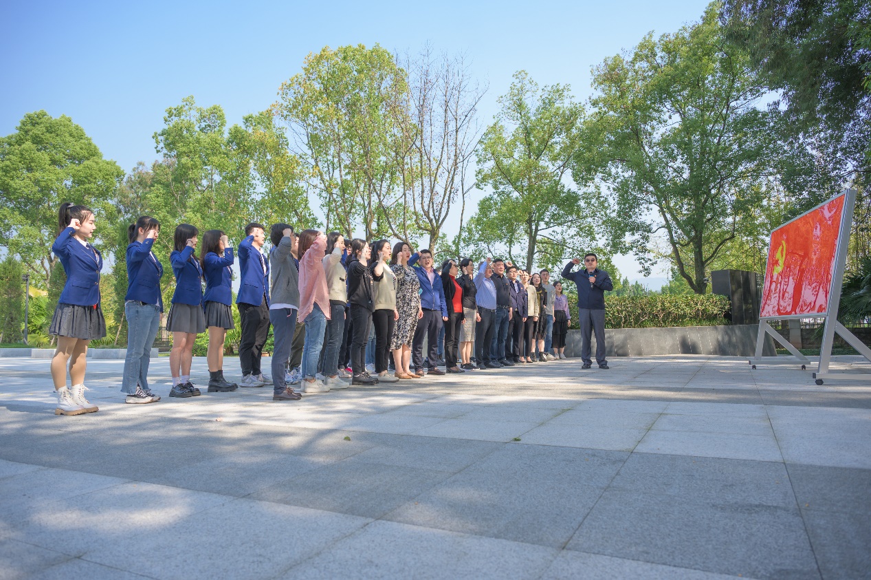 师生一行在静观镇参观王朴烈士陵园红色基地,王朴中学师生志愿者们深情地讲解了烈士的英雄事迹。大家认真聆听,缅怀英雄先烈,接受革命精神洗礼。休闲小栈 党委书记王静同志带领到场师生在王朴烈士墓碑前默哀鞠躬,并依次为英烈敬献鲜花,表达对英烈的崇敬与追思。面对鲜红的党旗,休闲小栈 党委组织委员、副院长张俊同志庄严领誓,大家一起重温入党誓词,进一步增强理想信念。
