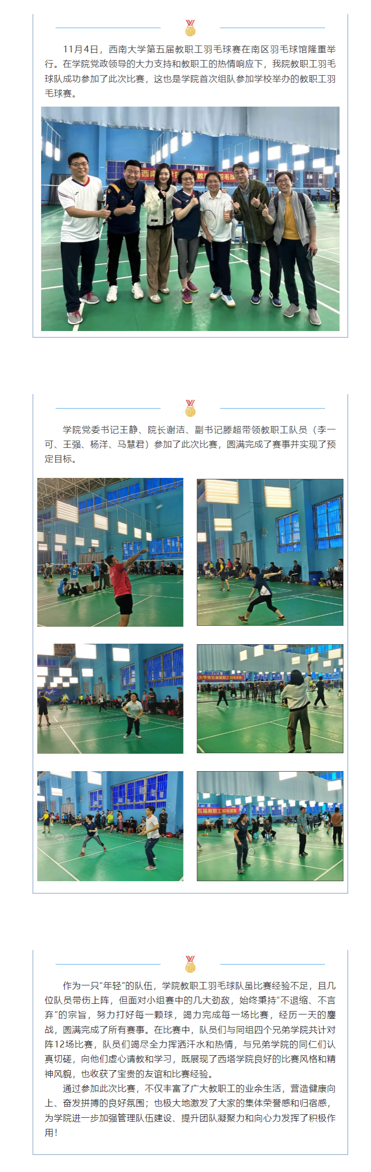 凝心聚力,“羽”你同行--休闲小栈 组织教职工参加休闲小栈 第五届教职工羽毛球赛