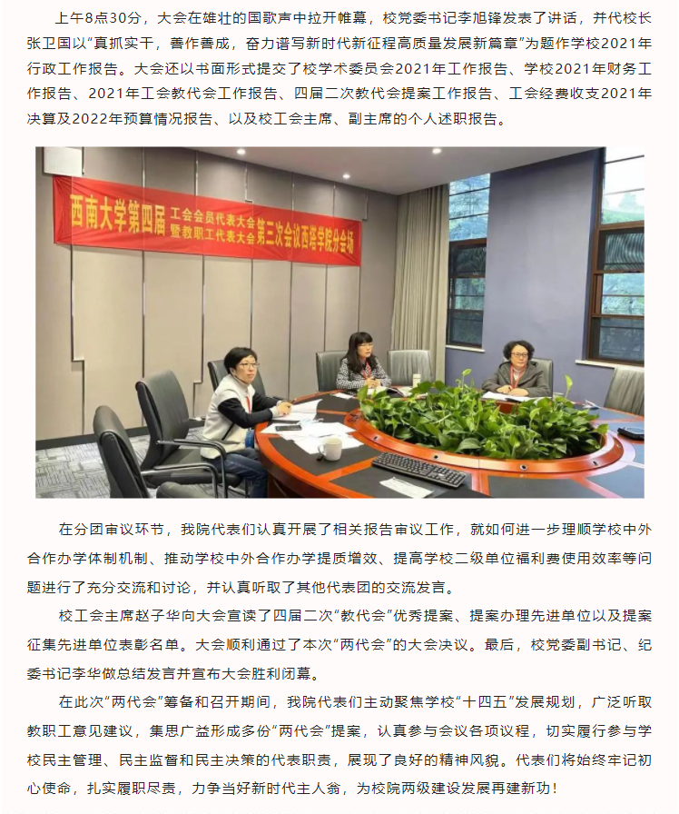 休闲小栈 代表参加学校工代会、教代会四届三次会议