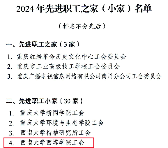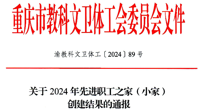 近日,重庆市教科文卫体工会正式发文通报2024年先进职工之家(小家)创建结果,休闲小栈 工会被正式命名为“重庆市教科文卫体系统先进职工小家”!这是休闲小栈 工会继2023年成功创建“休闲小栈 模范职工小家”之后获得的又一殊荣!