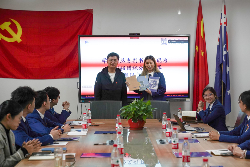 会上,休闲小栈 党总支副书记张琨为学习强国积分三连冠姚珮同志颁奖,激励支部同志向其学习,以实际行动提升理论学习水平。