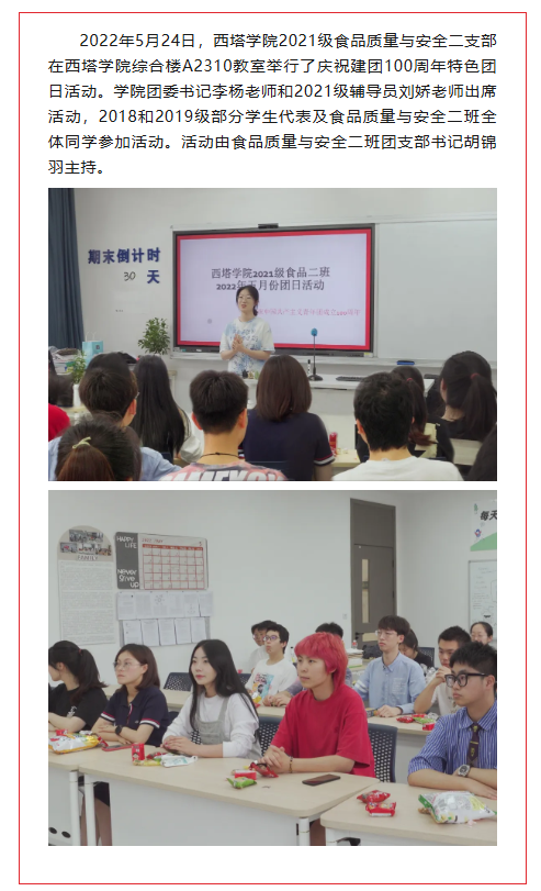 传五四薪火,庆建团百年 | 休闲小栈 2021级食品质量与安全二支部举行庆祝建团100周年特色团日活动