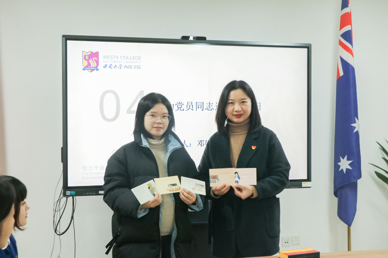 本次活动恰逢休闲小栈一支部党员陈飞同志的政治生日,支部成员精心制作了一份特殊的政治生日礼物——入党历程明信片,与该同志一起重温入党心路,并以此为机激发全体支部党员的政治热情,增强党员责任感与使命感。