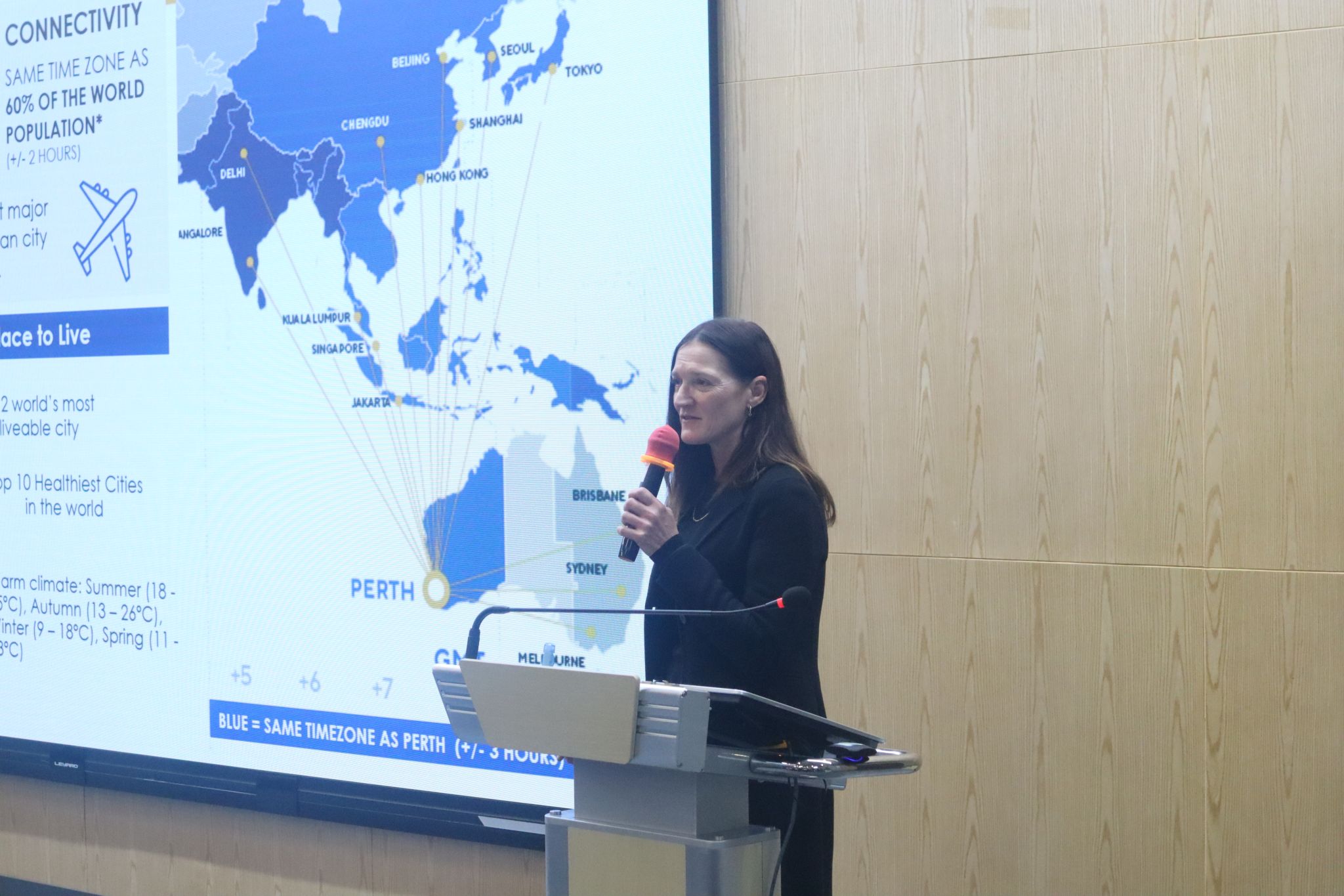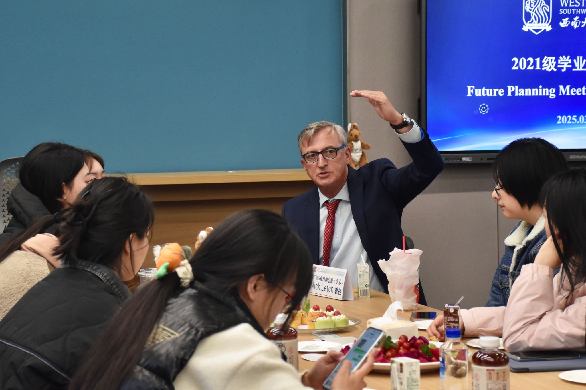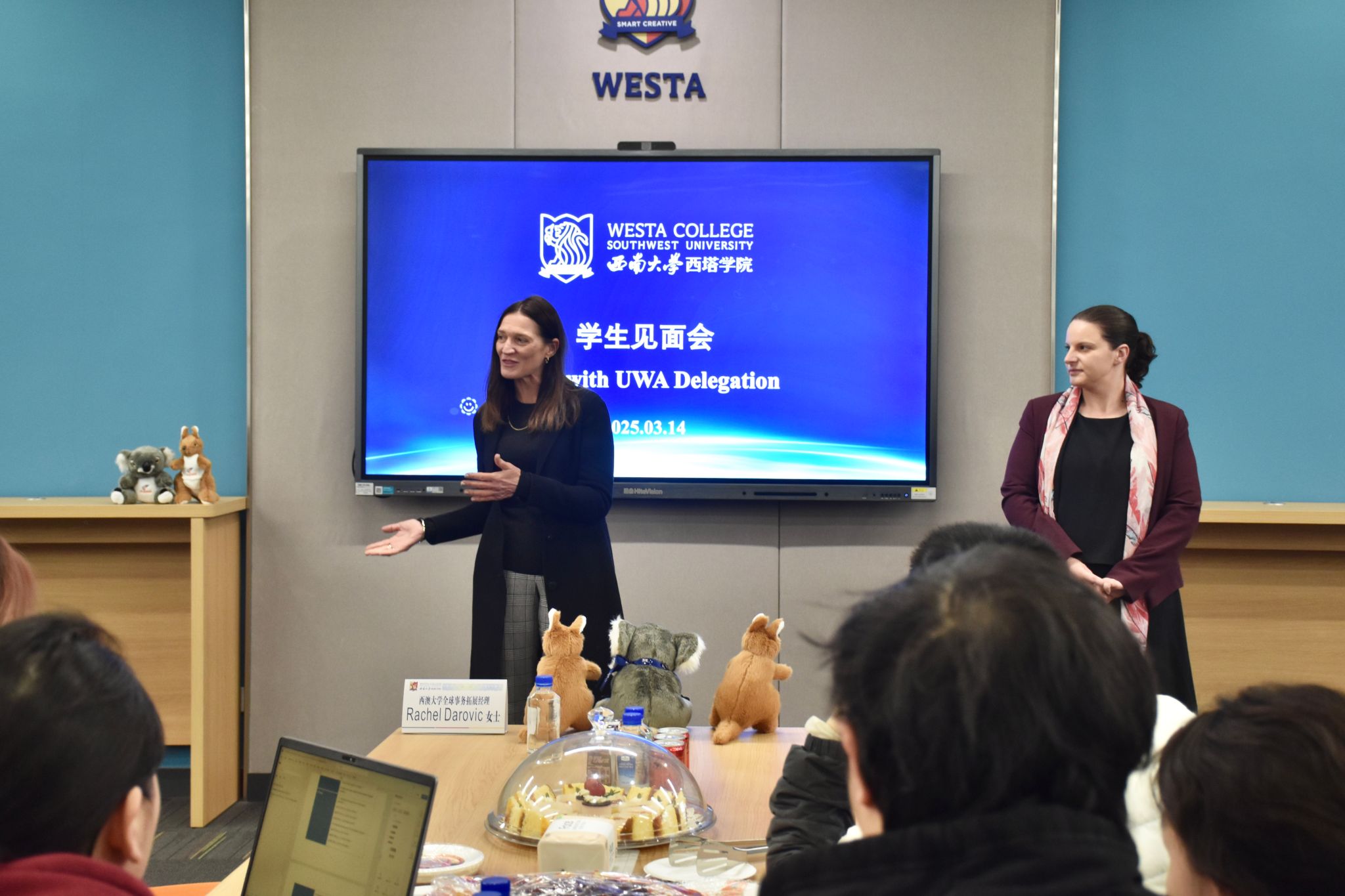 会后,代表团与2024级经济学、生物技术专业100余名同学共同交流,详细介绍了西澳大学的学术资源、毕业生就业与薪资优势、研究生深造机会,并通过校友案例分享,为大一学子提供发展路径参考。