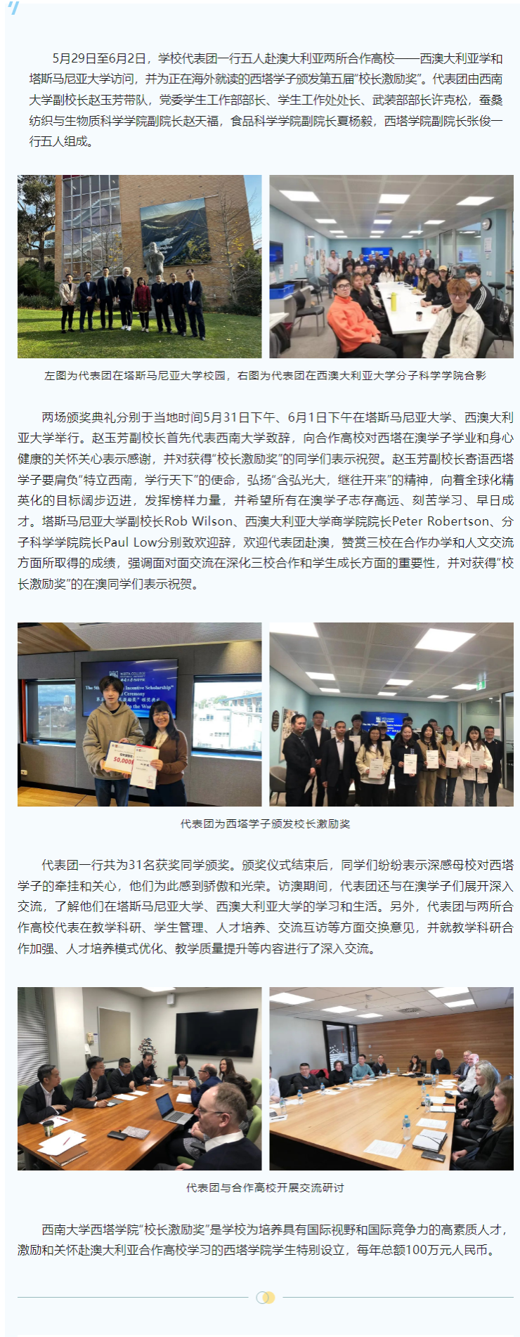 学校代表团赴澳大利亚颁发休闲小栈 第五届校长激励奖