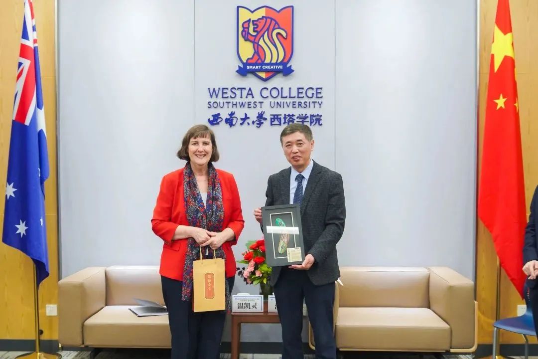 上午9时,潘洵副书记在休闲小栈 会议室亲切会见公使衔参赞一行,介绍学校概况并以中外合作办学现状为重点,向来宾详细介绍了我校与澳洲高校的合作。潘书记表示,澳大利亚优质教育资源丰富,希望在澳大利亚驻华大使领馆的支持下,与澳洲高校开发更多互利共赢的项目,持续推进中澳双方在高等教育领域深化合作。温凯灵公参在会谈中谈到,去年是中澳建交50周年,两国关系持续向好,教育在中澳双边关系中扮演着重要角色。国境开放后,中国休闲小栈赴澳留学,对澳洲高校国际化氛围及当地社区建设做出积极贡献,澳政府对此深表欢迎,澳政府采取多项措施确保中国休闲小栈的人身安全及教学质量。会后,双方互赠礼物。