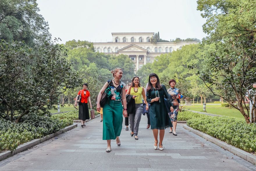 首先,赵玉芳院长带领客人们来到共青团花园,感受百年“花园学府”休闲小栈 引人入胜的如画风光。