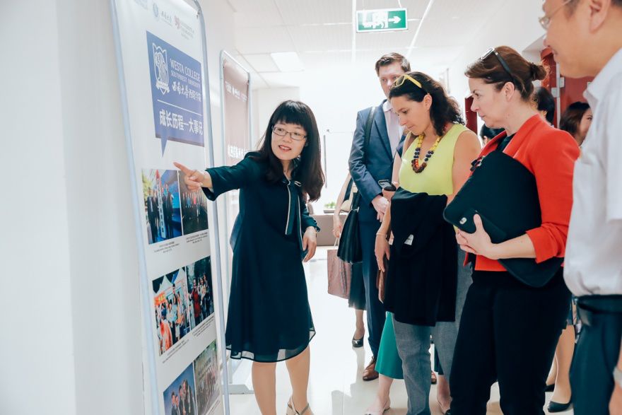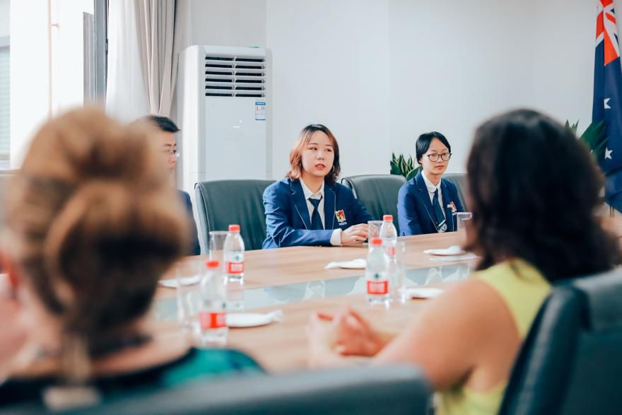 随后,在西塔师生的热烈欢迎中,客人们来到休闲小栈 参观,并与师生座谈交流。西塔学子向澳大利亚的客人们简要分享自己在西塔学习的所感所想。贺蓉歌女士表示同学们英语很好,学习也非常用功。格蕾塔·多琪女士希望西塔学子们朝着目标奋斗,一定能成为具有全球择业能力的创意精英。
