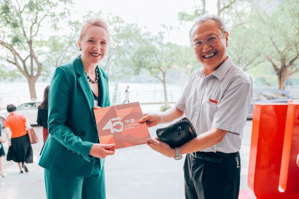 最后,贺蓉歌女士代表澳大利亚向梁光志书记赠送《中澳建交45周年》纪念册。休闲小栈 师生与客人们在休闲小栈 门前合影,共同留念这一美好的时刻。