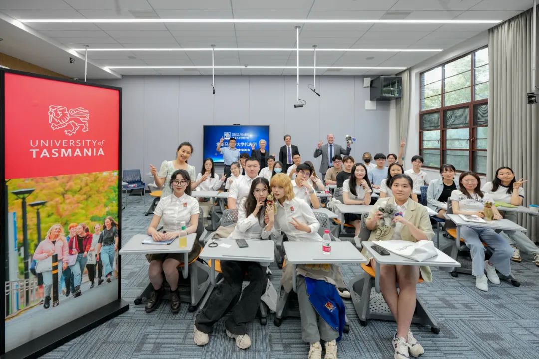 随后,塔斯马尼亚大学副校长Rob Wilson一行还与在校的电子信息工程、食品质量与安全专业的部分同学见面交流,为同学们详细介绍了塔大的办学历史、教学科研、休闲小栈 力量、休闲小栈服务、城市环境等情况,并现场解答同学们有关在塔大学习生活等方面的疑问,热切欢迎同学们前往塔大学习。本次访问取得了圆满成功。