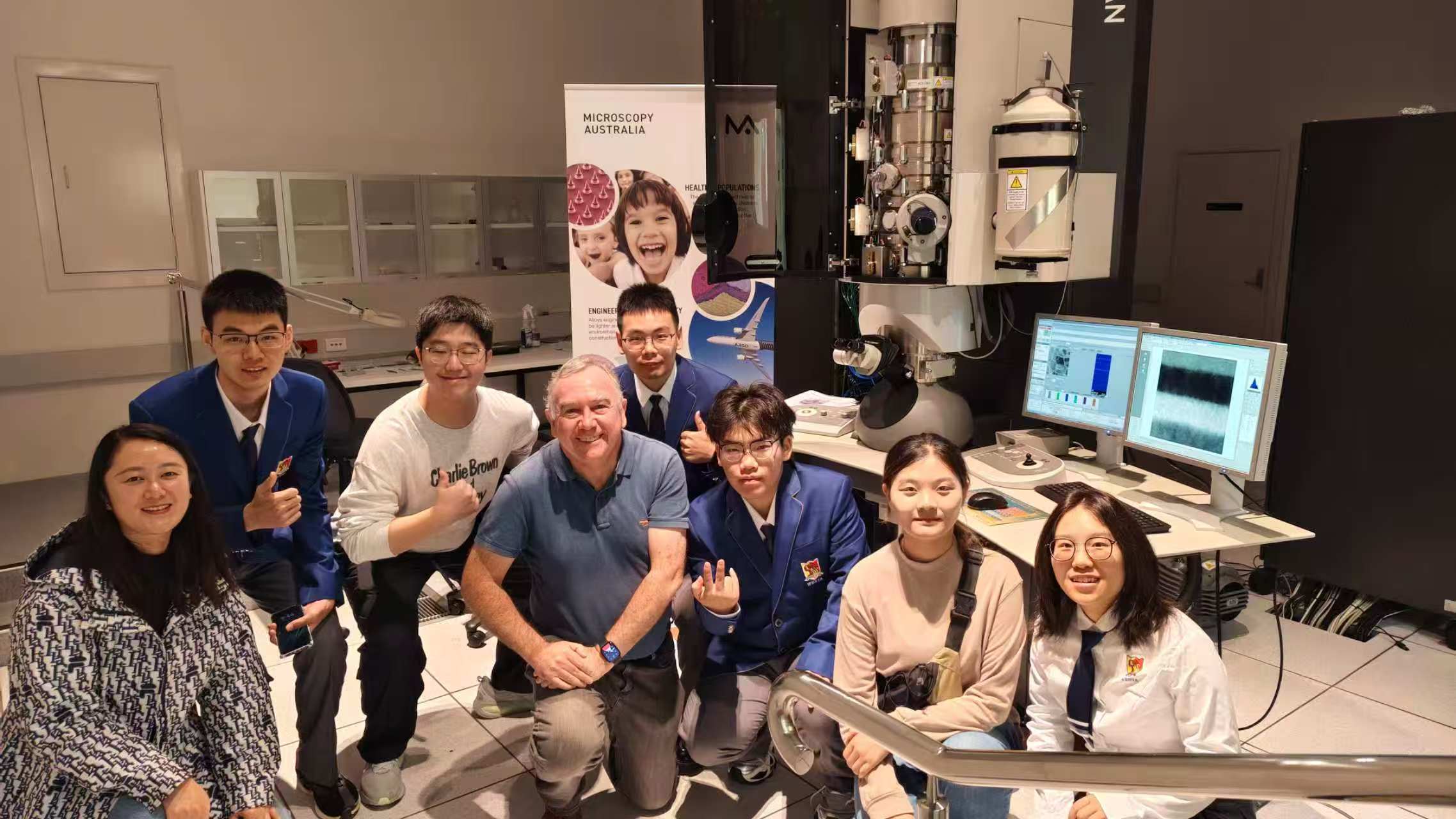 在堪称科研利器的CMCA(显微、表征与分析中心),三位资深导师带领同学们零距离接触了多台功能强大的尖端电子显微镜。 这些令人惊叹的设备不仅是微观世界探索的窗口,其应用更广泛延伸至材料、生物、工程等多学科前沿领域。导师们深入浅出、细致入微的讲解,不仅揭开了这些高精尖仪器的神秘面纱,更让同学们深刻体会到国际一流实验室严谨到近乎苛刻的规范流程。此行不仅极大地拓展了专业视野、增长了前沿见闻,更无声地传递了科研工作者的逻辑思维与严谨的科学态度,令人肃然起敬。
