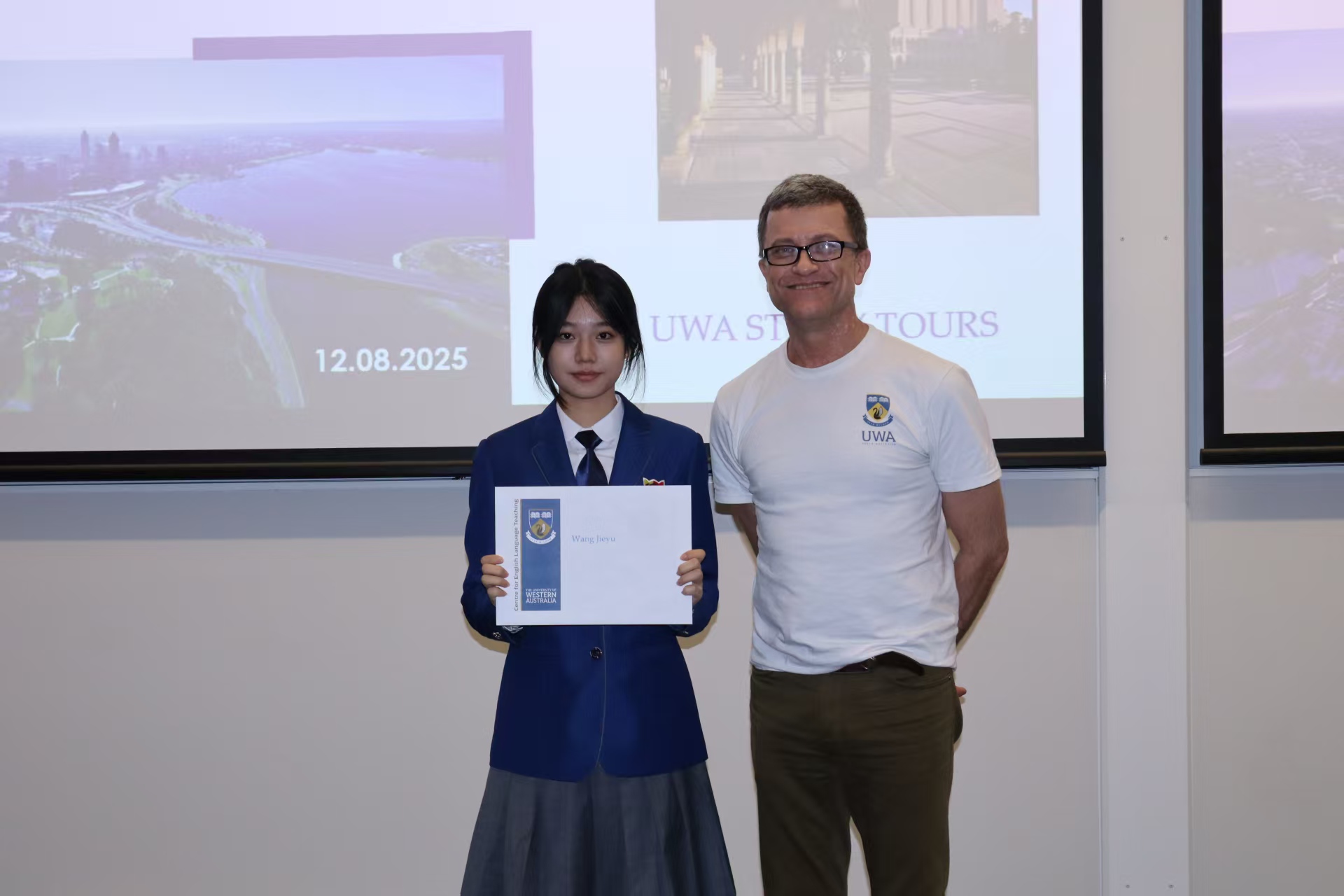 典礼上,Matthew老师首先致辞,他高度肯定了访学团成员在两周交流中的积极表现与亮眼成长,并向同学们发出赴西澳大学深造的诚挚邀请,期待两校续写合作佳话。