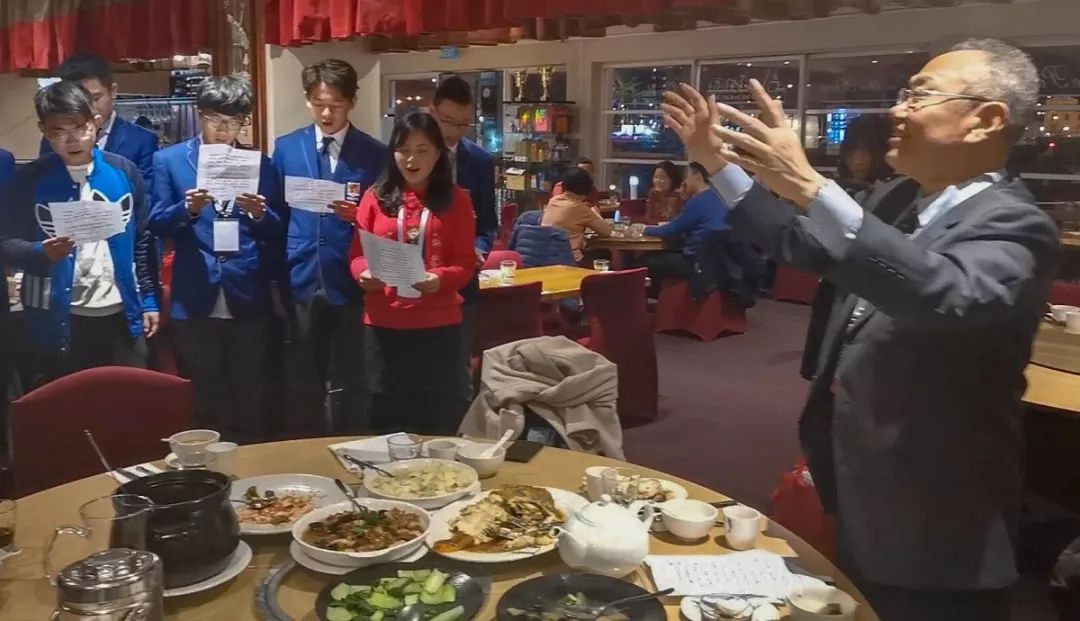 同学们在梁光志书记指挥下演唱《剪羊毛》