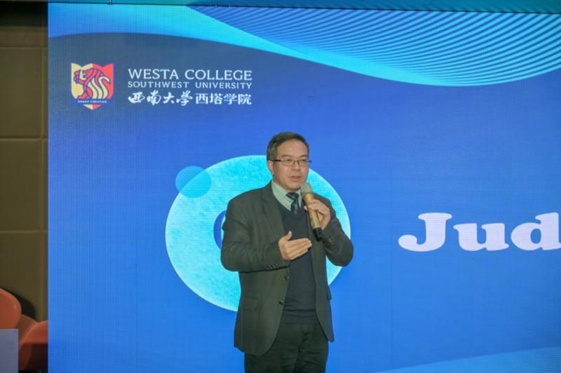 文旭院长对参赛选手的精彩表现作了高度评价,他赞赏了选手们出色的现场表现,肯定了他们的英文实力和个人风采,鼓励同学们带着热情学习英语,他评论到“Westa college students are excellent”。
