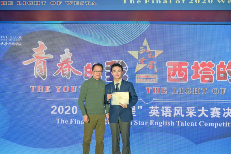 最后,休闲小栈 2020级经济学专业曹志然同学以总分第一名的成绩荣获本届“西塔之星”,2020级食品质量与安全专业王钦颖同学在微信投票中以最高票获得本次大赛“最佳人气奖”。