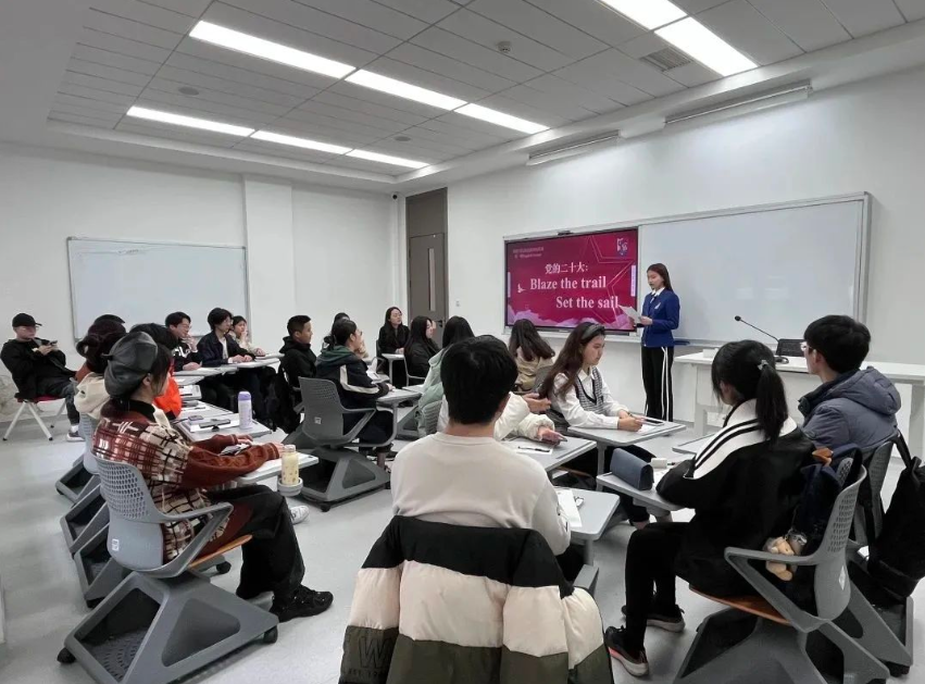 为在休闲小栈 营造浓厚的英语学习氛围,引导西塔学子深入学习党的二十大精神,激发西塔学子英语学习热情,英语演讲俱乐部于上周五在休闲小栈 D2115举办了“党的二十大:Blaze the Trail, Set the Sail”主题英语角活动。英语演讲俱乐部指导老师刘娇、国际项目办主任陈飞、实习辅导员邓雨蒙出席活动,40名英语爱好者参加活动。