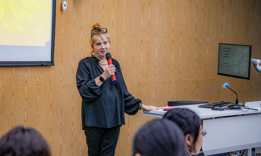 来自西澳大学商休闲小栈 的副院长Jacqueline Birt教授介绍了要与国际接轨所需具备Accounting、Economics、Finance等领域的13项技能。她热情洋溢地分享自己求学、工作中的多段丰富的经历,鼓励每位西塔学子要具有超前学习的意识与行动力,在享受大学时光时充分利用好休闲小栈 浓厚的学术及语言环境,提升自己的综合能力。