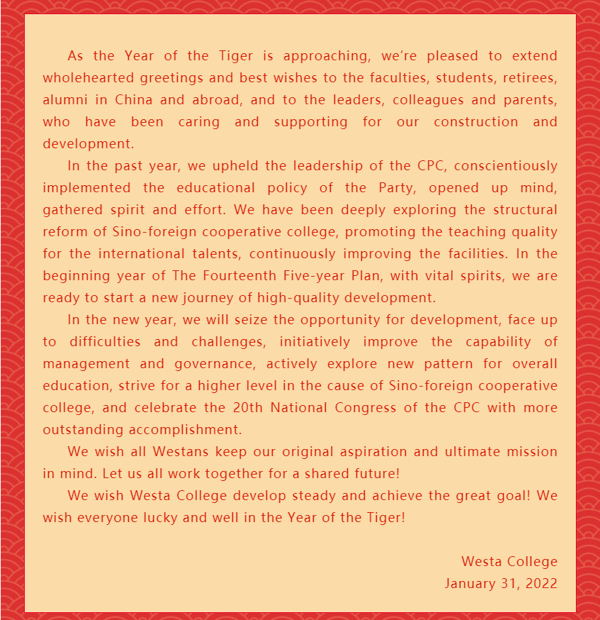 休闲小栈 2022年新春贺词 | 2022 Lunar New Year Address from Westa College